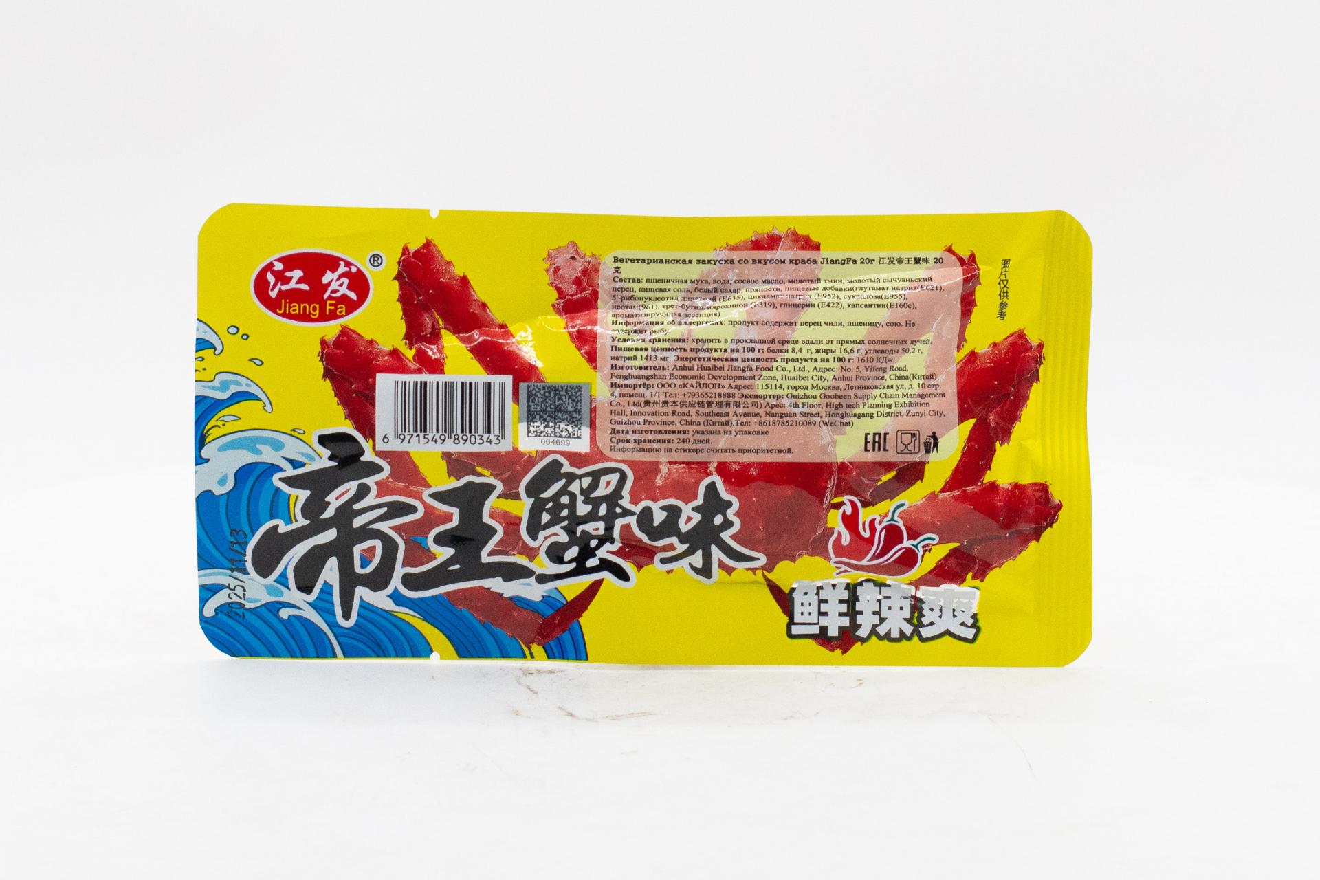 Вегетарианская закуска JiangFa со вкусом краба (Китай) 20г0,00 руб. за штуку (в упак. 30 шт.) |